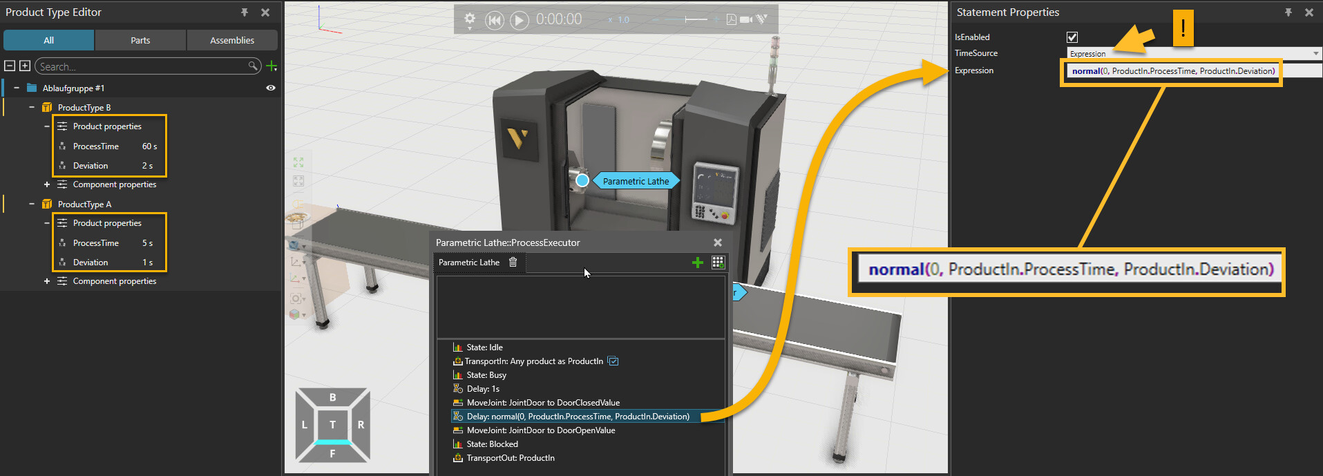 Add the product property “ProcessTime” and “Deviation” to your product types