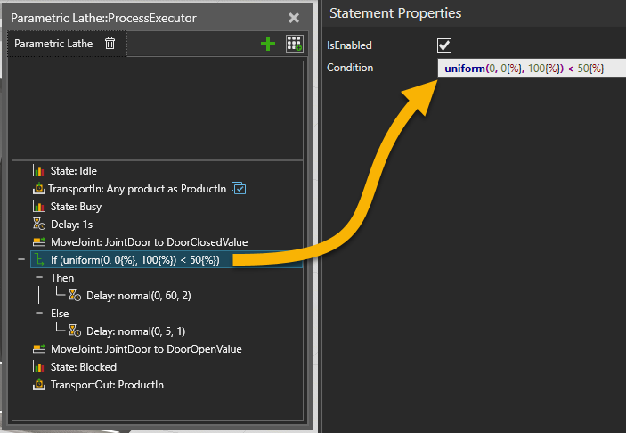 Add this as Expression: normal(0, ProductIn.ProcessTime, ProductIn.Deviation)