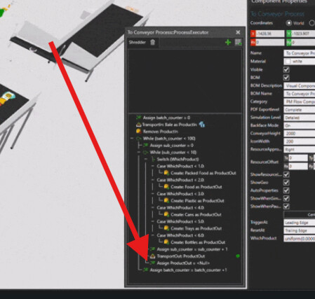 Problem: I have an inclined conveyor shown in the image, from this incline conveyor a cube is transported onto a conveyor below to it. Once this cube entered to (To conveyor in below conveyor) this cube is divided in 1000 different products (multiple product types all together sum to 1000). I am not sure how to do that. creating a product 1000 times is not ideal.