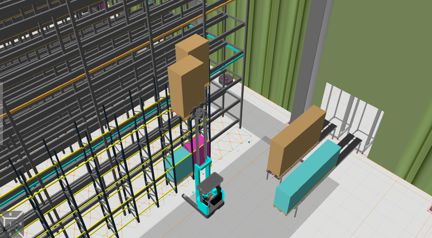 - Pick them up together by reach truck and move to large shelf.
