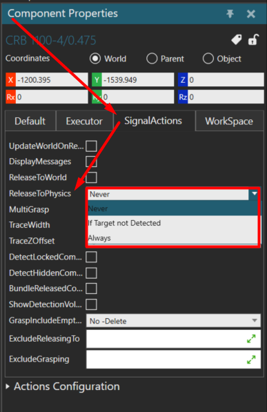 I am building a sorting cell and I was wondering if the component in the picture below could fall into the container under it if I place the component above the container? I know could otherwise just place the components in the box but was just wondering if this was possible and how I could go about doing this(no python preferred). The components inside the container would need to travel with the container once it is transported.