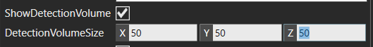 For example, if I change the DetectionVolumeSize to X:70 Y:40 Z:20 during simulation, it works with the modified values.