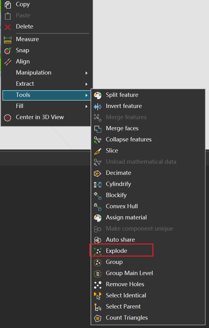 If there’s only a few objects I need to extract into a different geometry feature, I prefer Split tool, as exploding a large geometry feature takes time (and increases component file size unless the geometry feature is collapsed again afterwards).