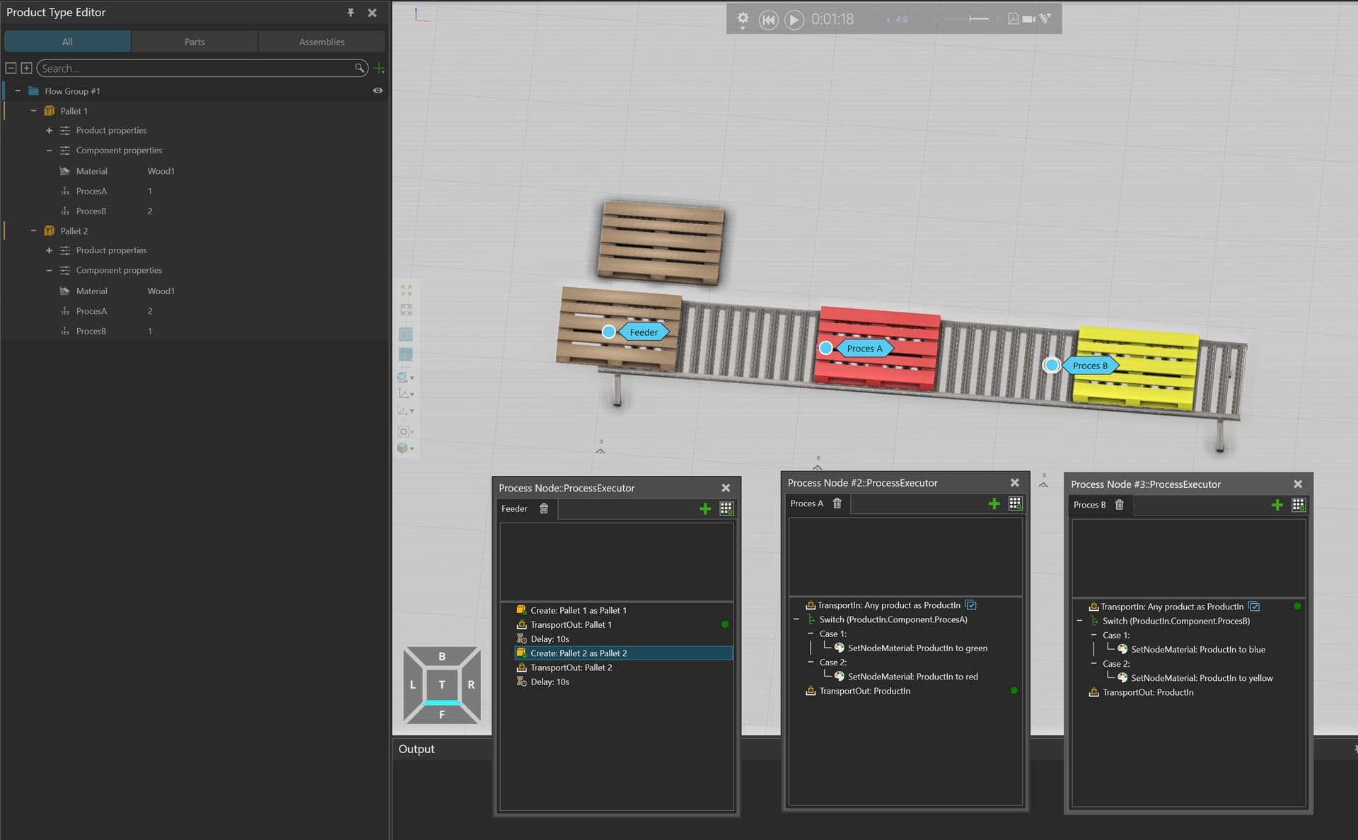 What I would like to achieve is the following: Each pallet should carry information (for example, an array or list of numbers) that defines which operation needs to be executed at each cell. For instance, the first number in the array (e.g., “1”) would represent which specific process simulation should be triggered at the first cell, the second number for the next cell, and so on.