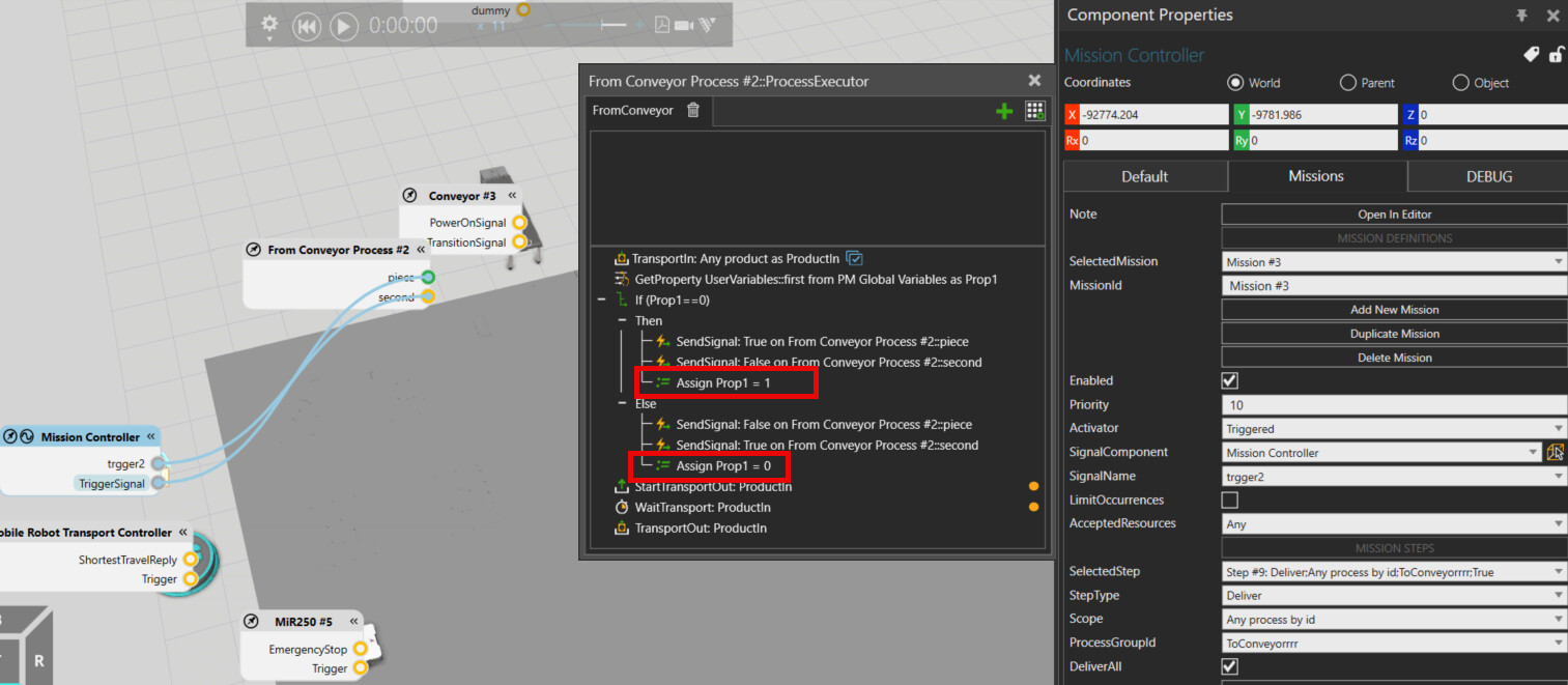 I tried to do this, a conveyor that doesnt really matter how fast it feeds. but the idea is that it will leave a battery above a tray, and then it will return the tray…i think im almost there, the problem is that i dont know why the robots wait for 2 or 3 trays to go to the sink conveyor…so what i want is just as it finishes, the robot goes right away to leave the last tray.