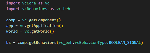 all_behaviors = comp.getBehaviors(vc.vcNodeTreeScope.COMPONENT) # All behaviors in all nodes of component