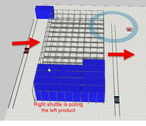 Left shuttle is ok and is filling up the shelf. The right shuttle should empty the lanes but it’s pulling the most left product from a lane. Can someone solve this?