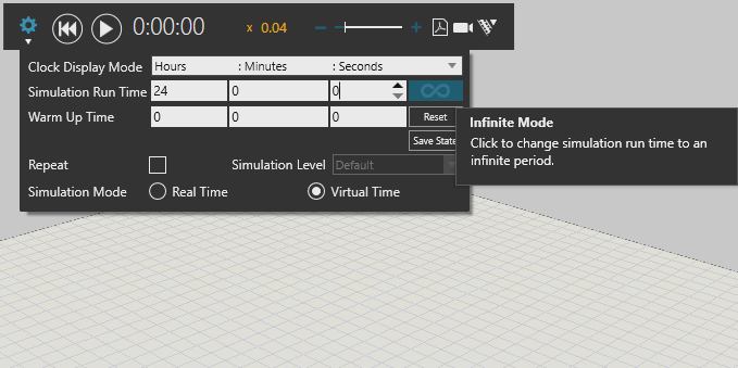 You may have accidentally zeroed the Simulation Run Time setting, which then yields that message when the 0-second long simulation has ended. Set it to infinite or to a non-zero time.
