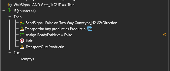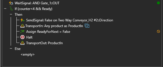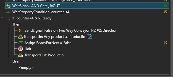 I have an AND Gate that gets True on its ports A and B at certain events. Its Output is evaluated in a WaitSignal statement so that next statement should execute only when the output is True. This is then followed by an if condition.