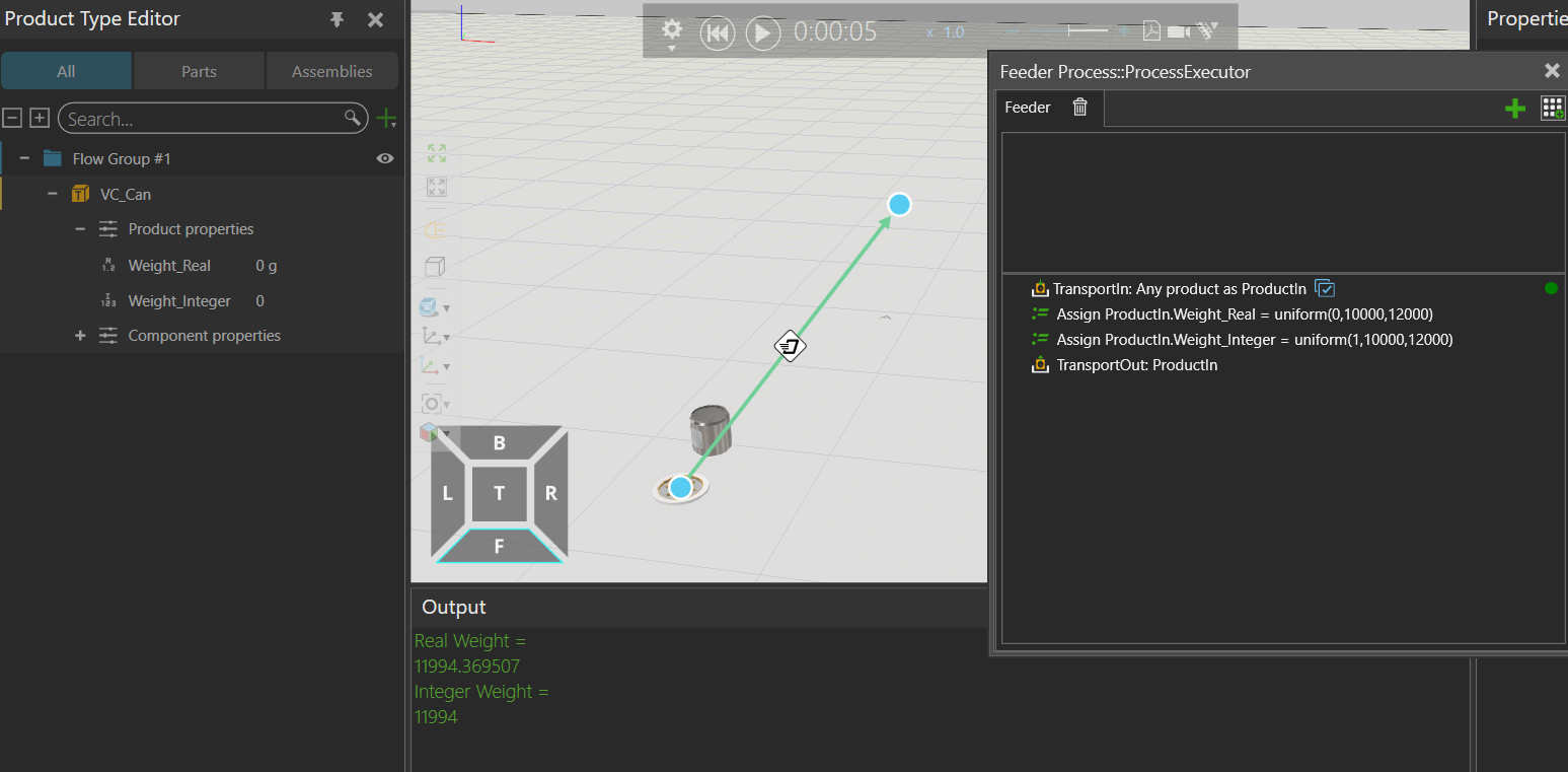 To assign a weight to the products, you need to do it in a process, for example in a Feeder process after the Product was created with an “Assign” statement.