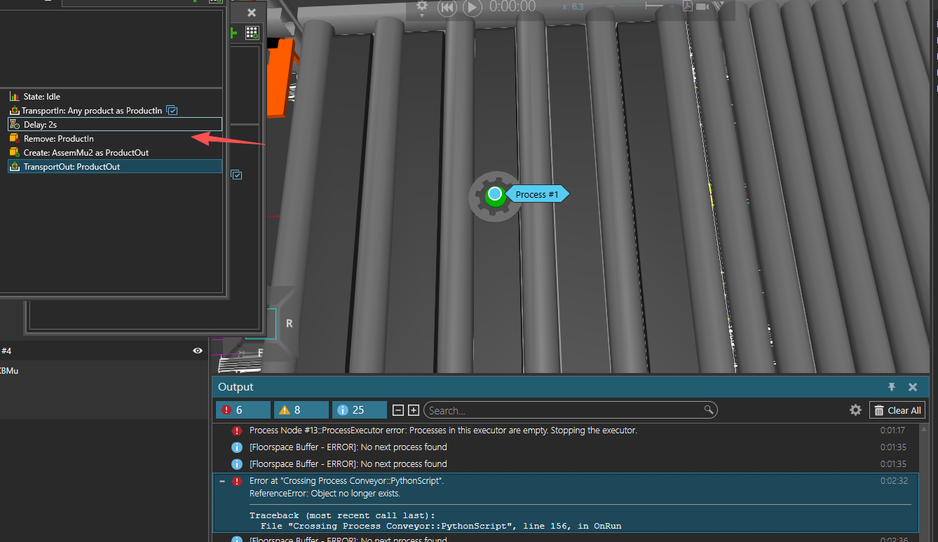 When I perform a remove operation on a crossing process conveyor, this error occurs and causes the second transportIn to fail to execute. I believe this error is unnecessary, because I sometimes need to use the remove operation.