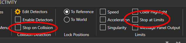 I just programmed the robot moves myself. There were no Stop or Collision detects on.
