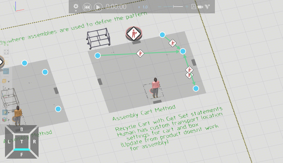 That layout proposes different ways of using the trolley either as a tool (always attached to the human) or part of an assembly (better in my case where trolley is brought to a certain point, after which human is free to transport in the products):