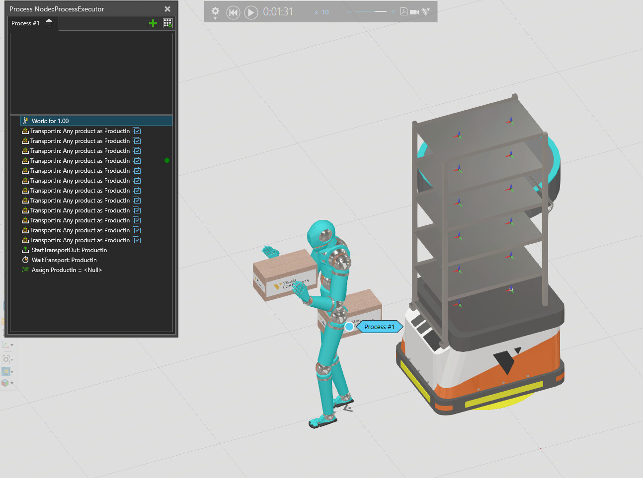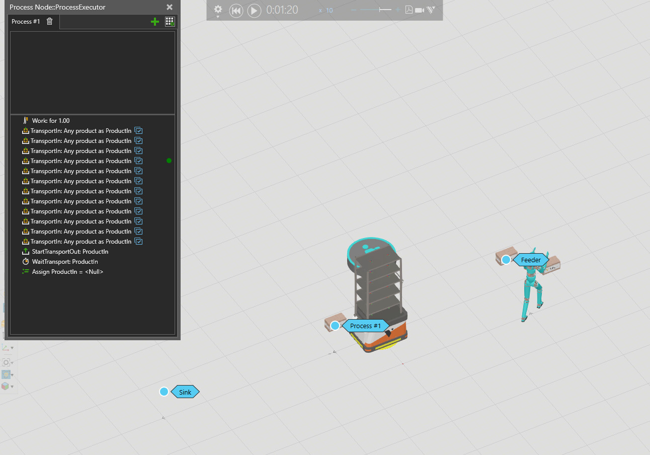 For the resources changing place, you can try using the Resource Reservation method: Resource Reservation | Visual Components Academy See the Layout Template “Fixed Process Order (reserve resource)” in the eCatalog