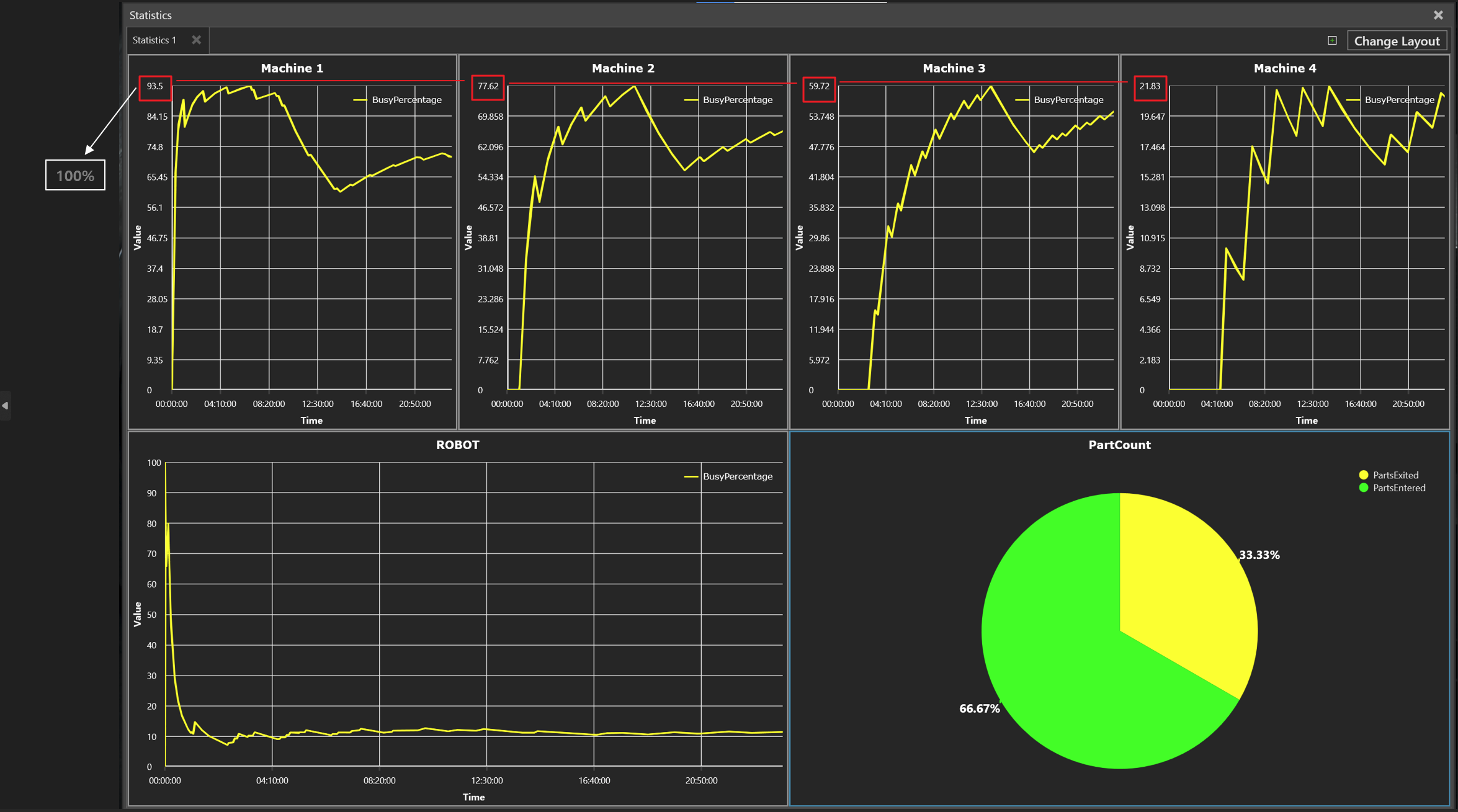 Alternatively you can add another set of data in your charts in their property panels. In it you track a property that stays constant at a value of 100. That way the chart axis must scale to 100.