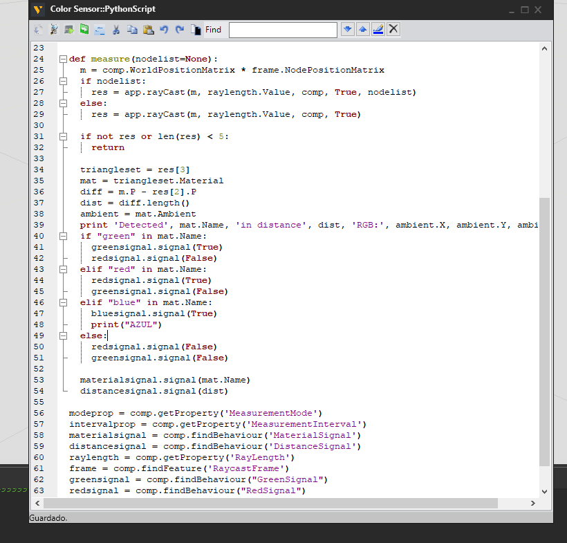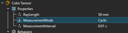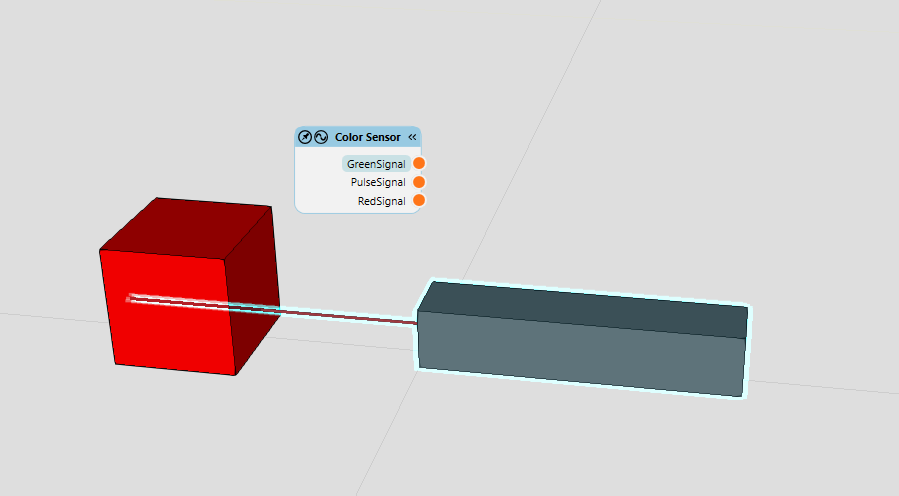 I modified it quickly for you so that it sends boolean signals if the material colliding with the ray has green/red in the name. Attach this to the robot’s link 5 or 6, take a measurement by sending a PulseSignal, and use the aforementioned expression in the IF statement. Color Sensor.vcmx (17.9 KB)