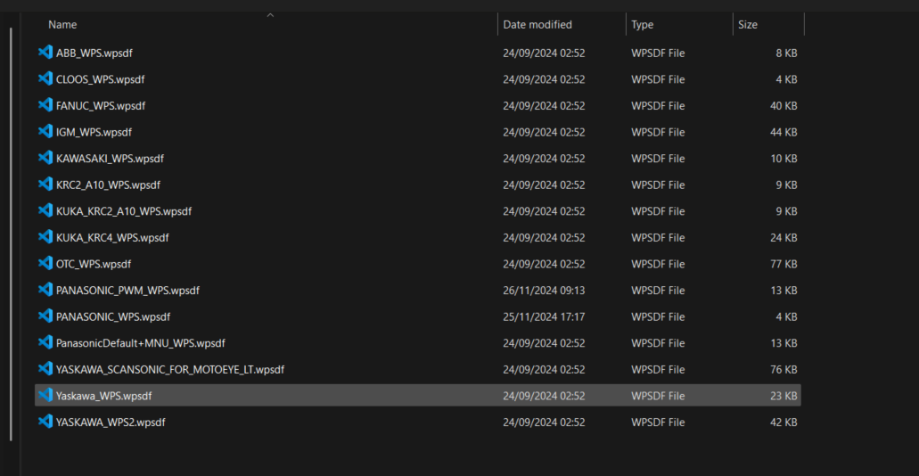 You can see some example files if you go to your robot settings and click browse in the WPS file option. There’s a folder with examples for each manufacturer.